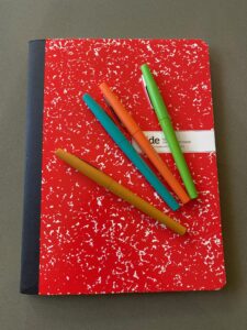 We began with lots of writing exercises. They were quick – less than five minutes for each prompt – and hand-written in notebooks. (I also brought a set of thin colored markers to make the writing more fun.) Apparently, this fast-paced format was crucial to unlocking the most visceral of memories; experiences that had a dynamic emotional impact on our lives and lurked just below the surface. I was amazed at what I remembered. Detailed anecdotes that had been buried inside me for years, even decades, were waiting to burst forth.
